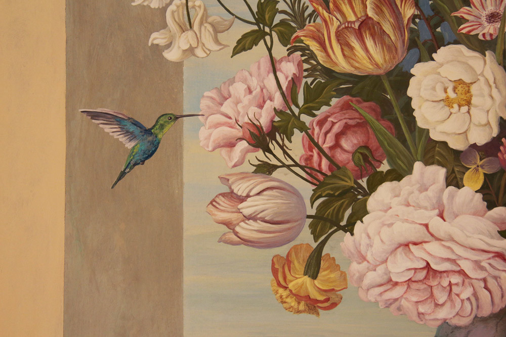 Зависит от объёма и сложности. Без эскиза все обозначенные сроки будут очень приблизительными. Роспись средней сложности 3-5 м2 делается одним человеком за 14-30 дней.
